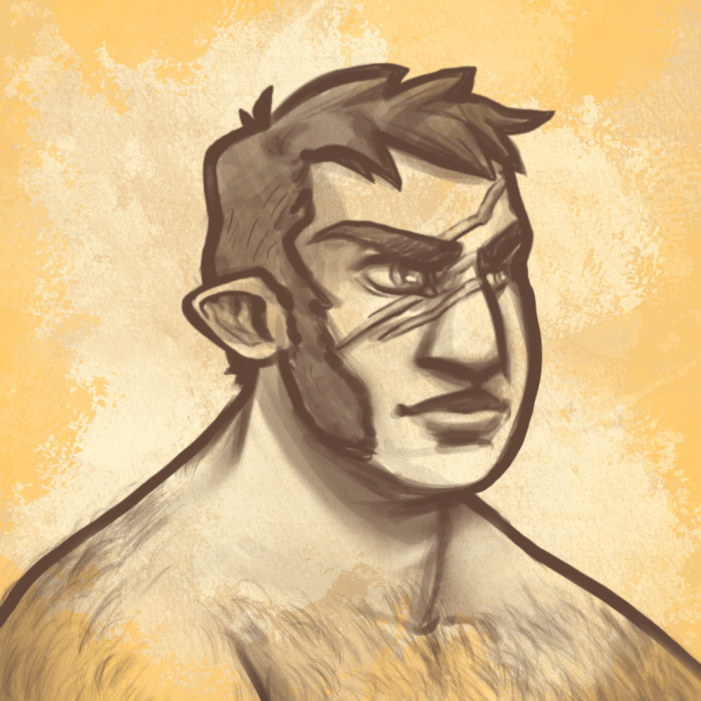 Regular exposure to the harsh desert sun has caused their complexions to be darker tones from tan to dark brown. Their hair is typically a lighter color. Manes are not as common, but they are not rare. All Canzi still develop very thick and full hair that runs a little further down their necks than other races. Occasionally you will see a Canzi with subtle, striped markings on their skin.