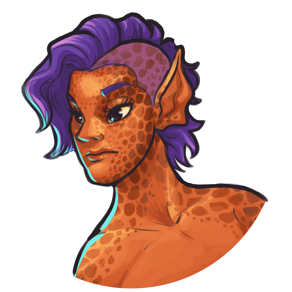 These people tend to be the most consistent in complexion, usually having markings that are naturally about one shade removed from their base skin color. They commonly have dark hair like most Bodren, but it’s not uncommon for them to have mid-range, cool tones as well such as soft blues, purples, and greens. Their facial features are the least outright Sylvan-featured of all the Sylvan people, with smaller, more humanoid eyes, and sharper, more angular features.