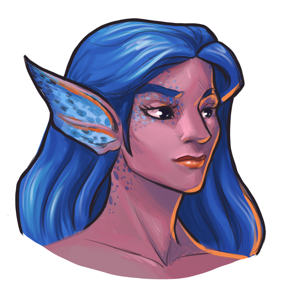 It is thought that these people, while rare, were a small group of Bodren who traveled down-river from the central wetlands before the establishment of the Rootport Dam in the Age of Witches. Their long-time existence in isolation in the cooler, more turbulent waters of the northwest have created a strange and fierce people that come across as unsettling at first glance. Despite this, their people have actually traded, intermingled, and even integrated with the coastal folks of the north for hundreds of years. Some Armadic tales even tell of interactions with the ‘fish people’ before the establishment of Willonia itself.